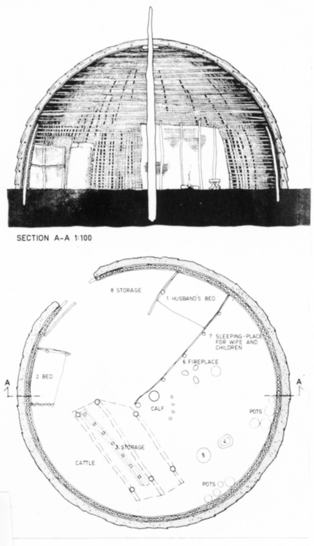 Fetchena är en by i höglandet. Området är tättbefolkat av fattiga jordbrukare, vars hyddor ligger utspridda mellan de små åkrarna. Byn innehåller ett 50-tal likadana hyddor. En hydda består av en kupolstomme av grenar, som stöttas av en central påle. Stommen kläs med gräs. Invändigt är hyddan delad i två rum av en skärmvägg. Jämför med modell 270.