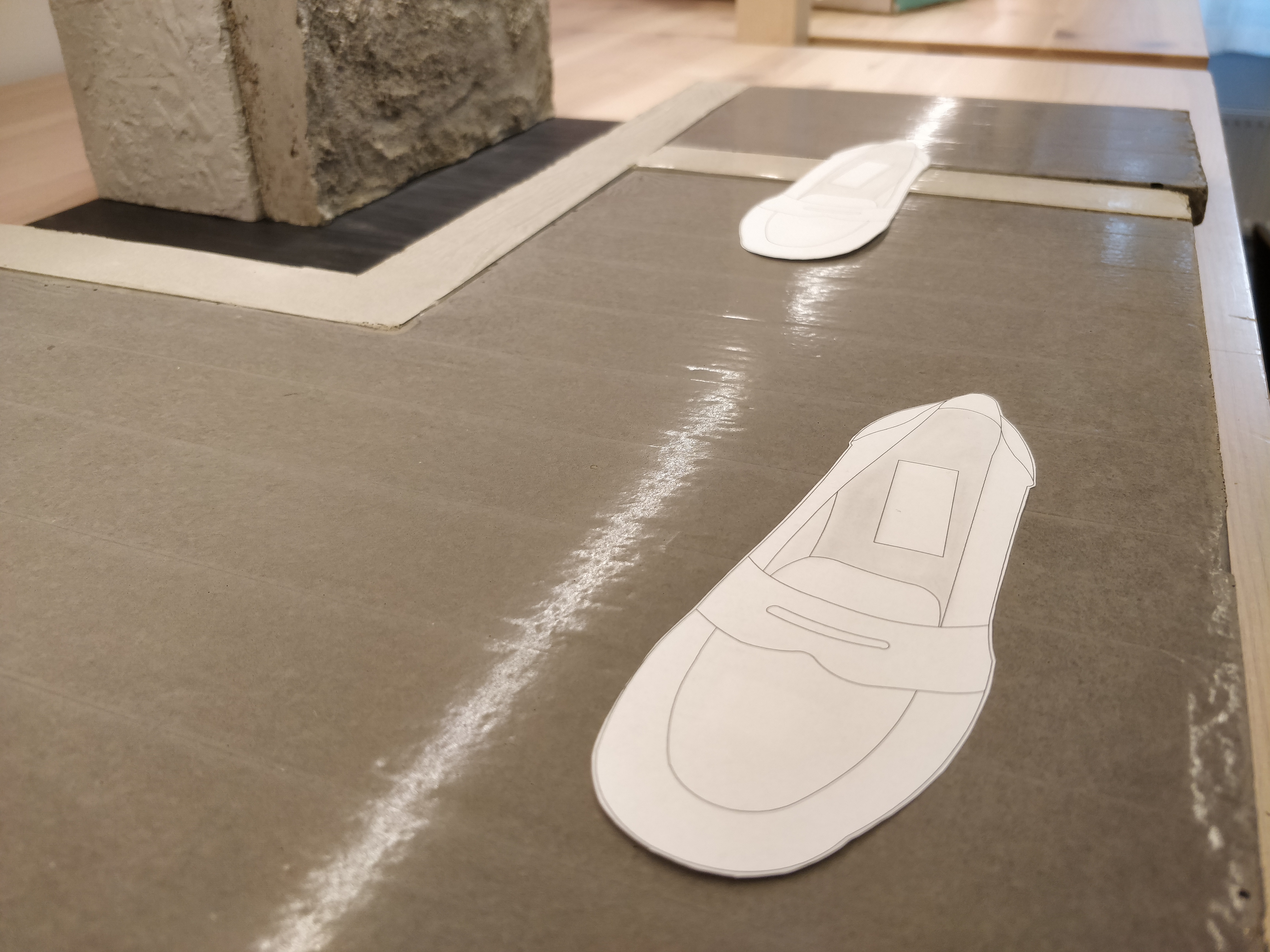 | dc.description.abstract | Carlo Scarpas nya golv möter det befinntliga golvet i den norra museedelen (Vitputsade byggnaden) Det nya golvet består av gjuten betong vilken är inramad av ljus prunsten. Prunstenen går även i breda ränder längs med betongsektionerna och en svagt rosafärgad variant återfinns på väggarna i de smala passagerna. Betonggolvet går inte hela vägen fram till väggarna utan lämnar ett mellanrum där det gamla golvet går att se. | sv |