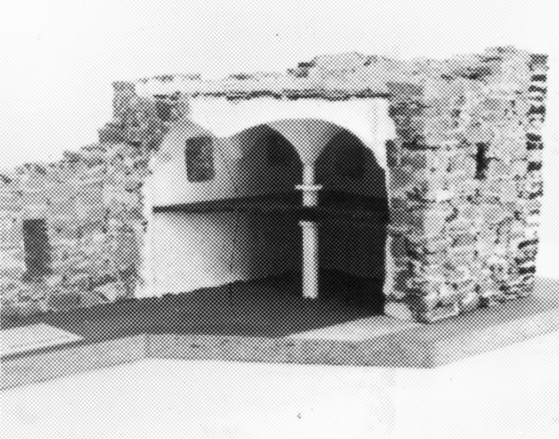 Glimmingehus är en senmedeltida borg, byggd kring 1600. Modellen visar de nedre våningarna i byggnadens östra del. De drygt 2 m tjocka murarna är murade lodräta av sandstensblock, med kvaderomfattningar i hörnen. Bjälklaget mellan bottenvåningens folkstuga och borgsalen består av träbjälkar som vilar på en längsgående bjälke, som mitt i rummet bärs upp av en pelare. Borgsalen täcks av fyra solida korsvalv, som utgår från hörnkonsoler och kragstenar samt en mittkolonn. Takvalven är murade av kalksten från trakten.